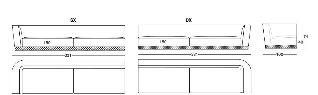 WELLES 331х100 см LONGHI Боковая секция дивана (SX/DX)