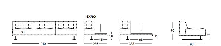 MASON 333х105/95 см ...MASON 333х105/95 см LONGHI Боковая секция дивана (SX/DX) (каркас с основанием из металла)
