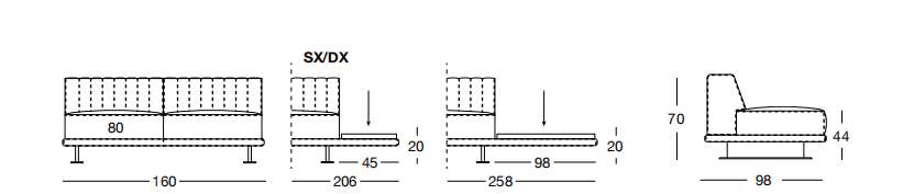 YOUNG 160х98 см LONGHI Центральная секция со столиком 45 см (SX/DX)