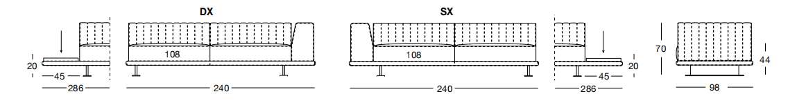 YOUNG 240х98 см LONGHI Боковая секция без столика (SX/DX)
