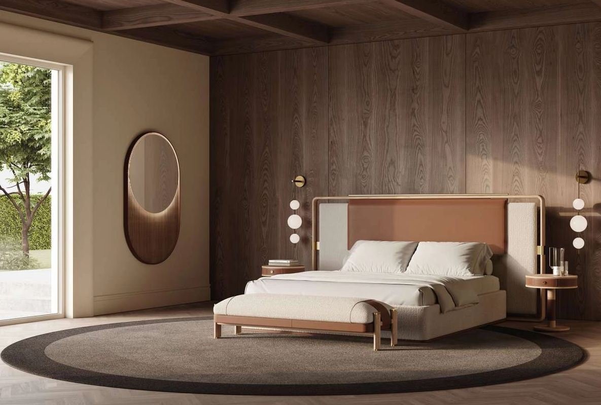 • Игру материалов. Сочетание дерева, металла и текстиля придаёт моделям глубину и характер, превращая кровать в арт‑объект.